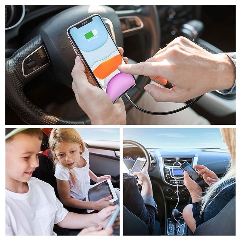 - De fem outputs og forlængerkablet lader passagerer foran og bagved genoplade deres enheder samtidig