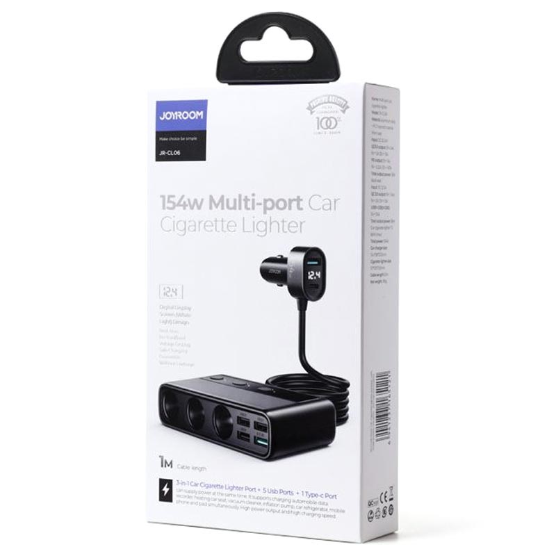 Joyroom JR-CL06 154 W Multi-Port USB Billader med 3x Lighterstik - 1x USB-C PD, 2x QC3.0 USB, 3x USB