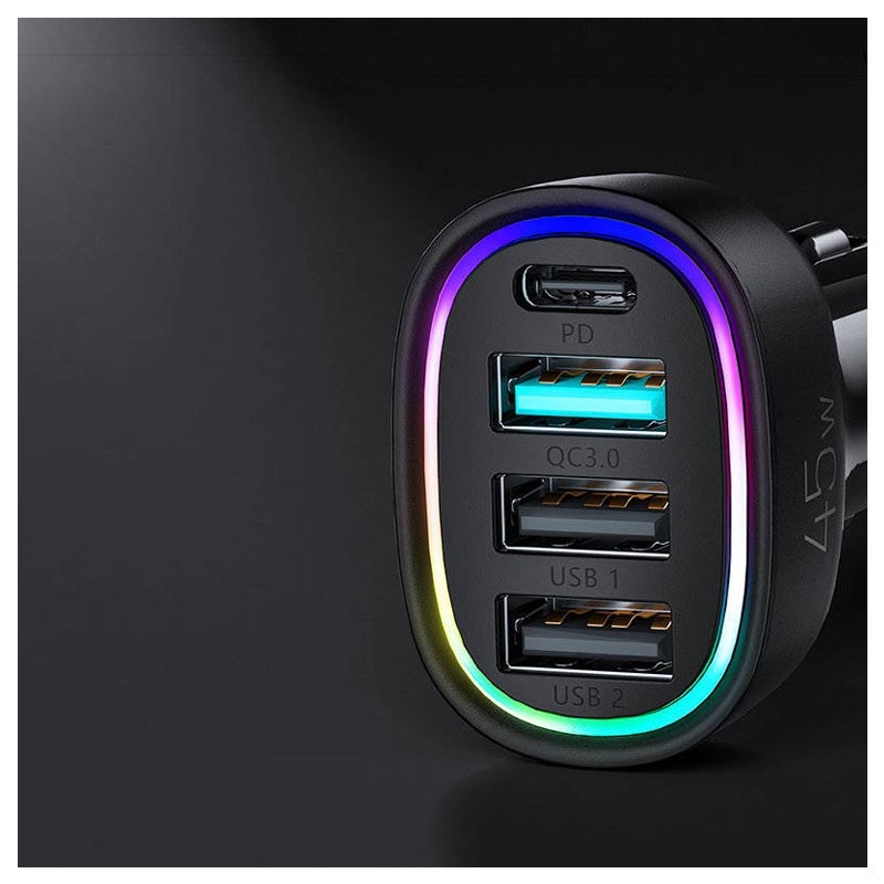 Joyroom JR-CL09 Multi-Port Biloplader 45W - 1x USB-C PD, 1x QC3.0 USB, 2x USB, LED