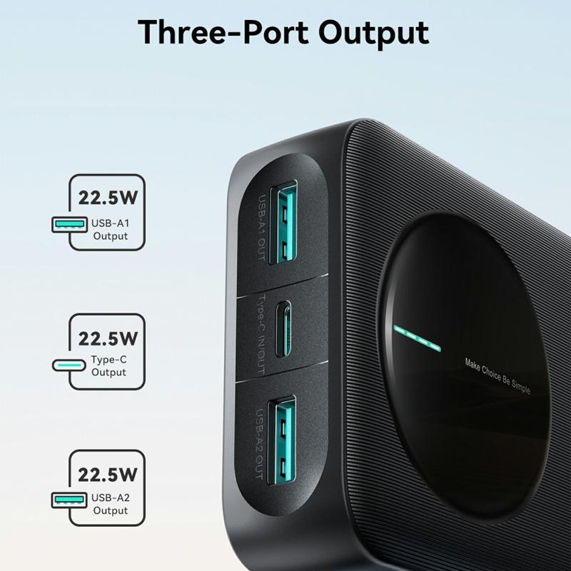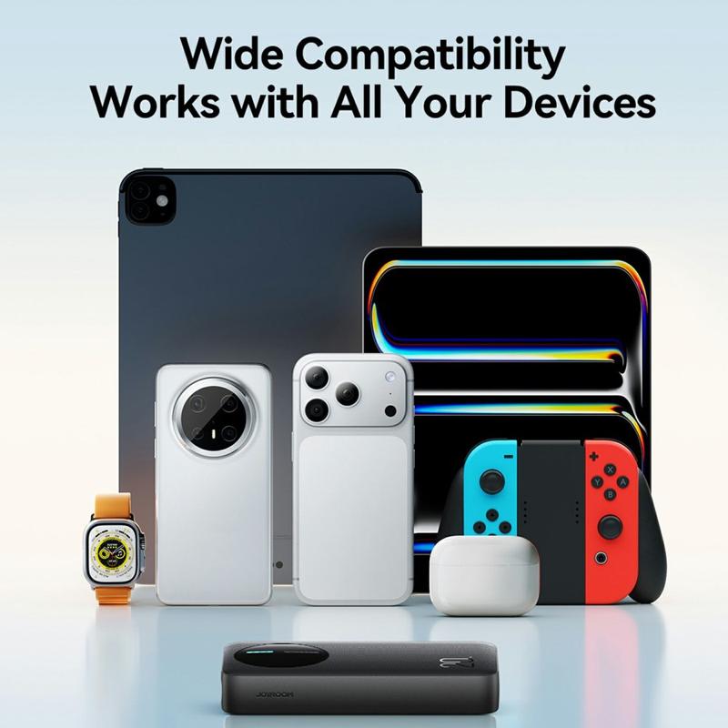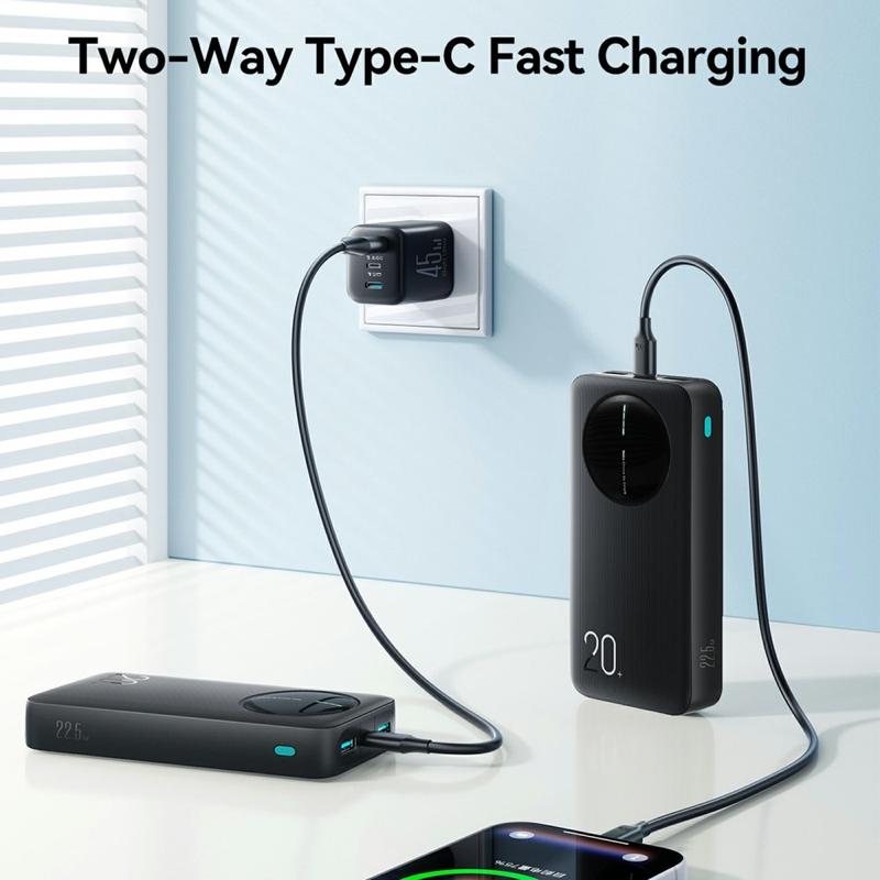 JOYROOM JR-PBF14 Pro powerbank er bygget til travle dage, rejser og opladning af flere enheder. Med en høj kapacitet på 20000mAh giver den dig pålidelig backup-strøm til smartphones, tablets, øretelefoner og meget mere. Hurtig opladning på op til 22.5W hjælper med at reducere ventetiden, mens tre udgangsporte giver dig mulighed for at oplade op til tre enheder samtidigt. En tydelig 4-LED-indikator viser den resterende strøm på et øjeblik, så du altid ved, hvornår det er tid til at oplade.