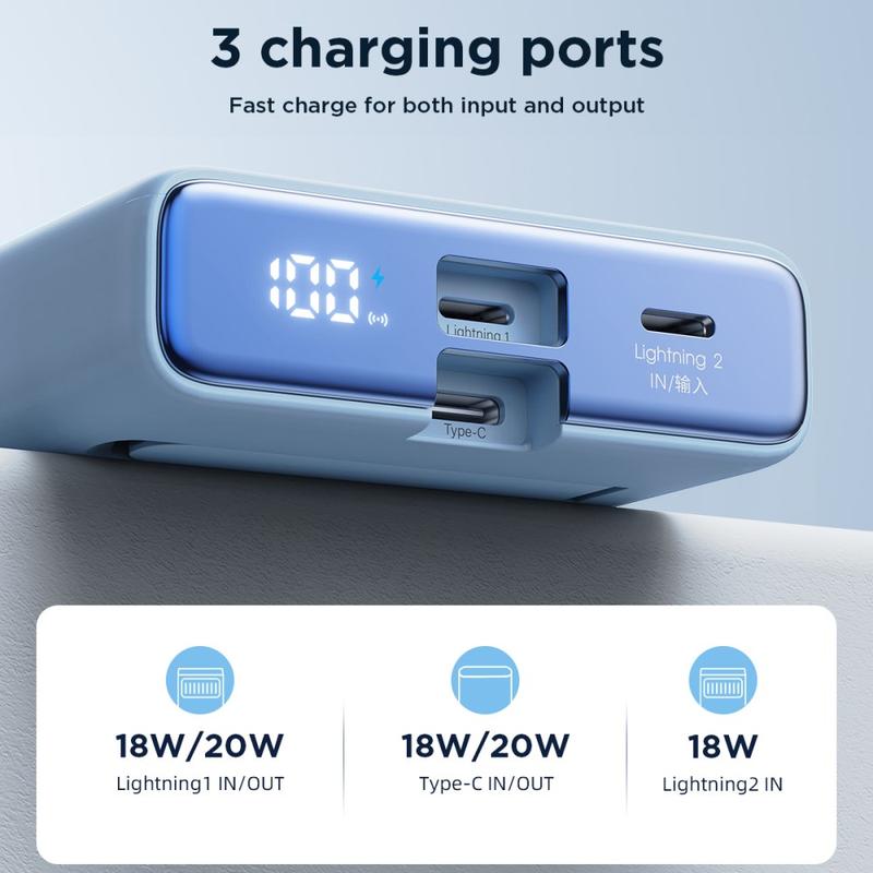 Leveres med et aftageligt kabel, der kan oplade tre enheder med ét kabel, inklusive Apple/Android-enheder/selvopladning