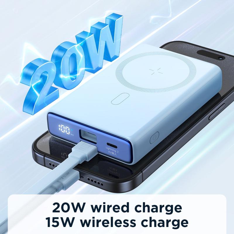 JOYROOM JR-PBM01 PD 20W 10000mAh telefon powerbank magnetisk trådløs oplader med indbygget kabel / kickstand - sort