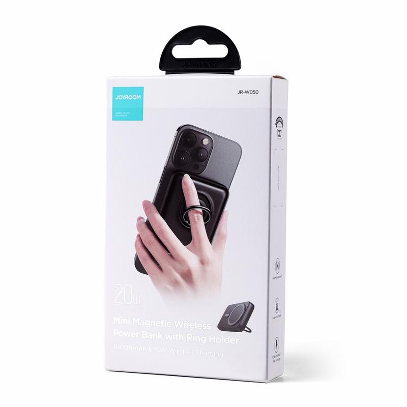 JOYROOM JR-W050 20W PD3.0 hurtigopladende powerbank 10000mAh magnetisk trådløs oplader ekstern batteripakke med ringholder kickstand - sort