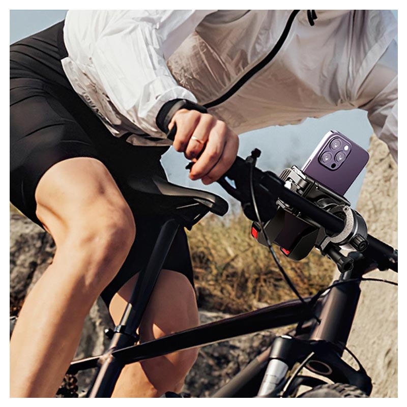 cykeltelefonholder. Denne Joyroom JR-ZS266 cykelholder er perfekt til alle, der har brug for at navigere under cykling, spore distance eller fitnessdata med cykelapps, eller blot ønsker at holde deres telefon let tilgængelig. Dens sikre greb sikrer, at din telefon bliver på plads, selv under ujævne ture eller ujævnt terræn.