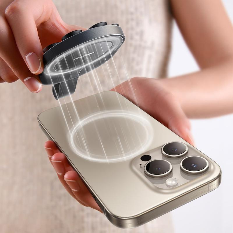 Joyroom JR-ZS393-S magnetisk telefonholder med sugekop giver en sikker og alsidig løsning til din telefon. Den magnetiske base sikrer et fast greb om din enhed, mens silikonematerialet giver holdbarhed. Denne holder er ideel til biler, skriveborde eller andre overflader, hvor der er behov for håndfri brug af telefonen.