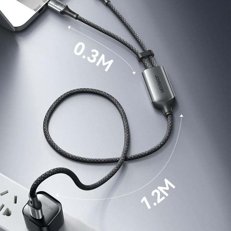 Joyroom S-A57 USB-C til 2x USB-C-opladerkabel - 100W, 1.5m - grå