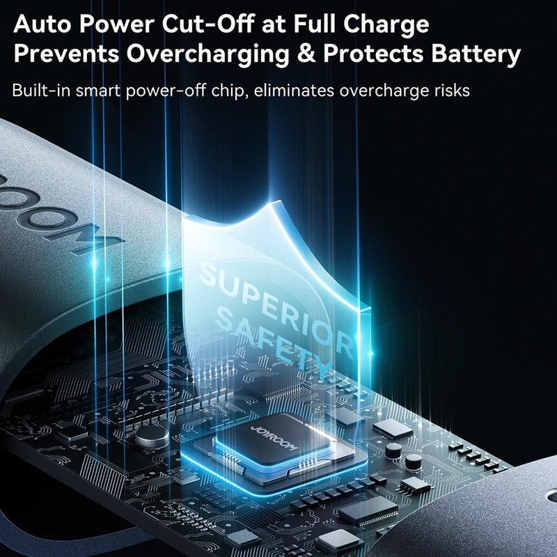 Den indbyggede intelligente chip hjælper med at regulere spænding og strøm for en mere stabil opladning, mens den smarte automatisk sluk-funktion afbryder strømmen, når enheden er fuldt opladet. Dette hjælper med at passe på batteriet og gør opladning om natten mere trygt. Den tofarvede LED-indikator gør det også nemmere at se opladningsstatus med et enkelt blik.