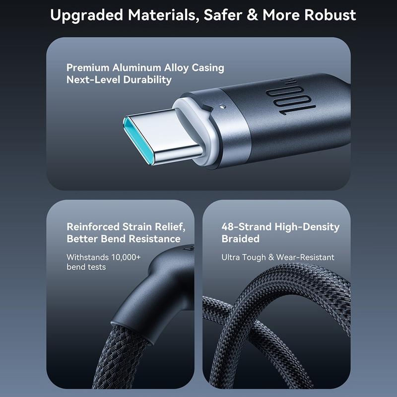 100 W USB-C-kabler er særligt populære, fordi de ikke kun kan oplade telefoner og tablets, men også mange moderne bærbare computere og større enheder. Flettede kabler foretrækkes ofte til daglig brug, fordi de er mere slidstærke end almindelige plastbelagte kabler, især når de bæres i tasker eller bruges ofte.