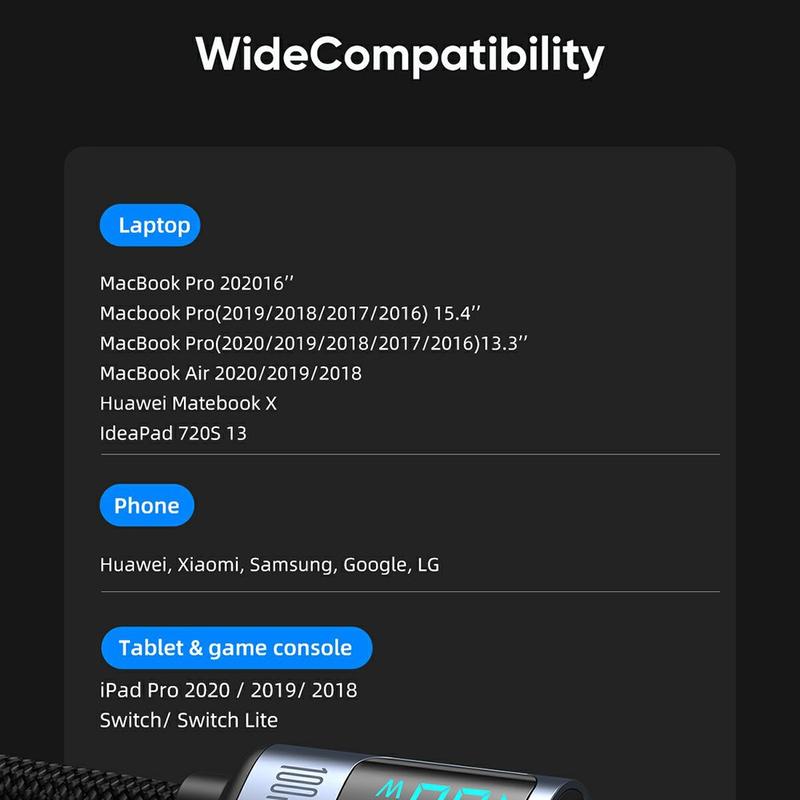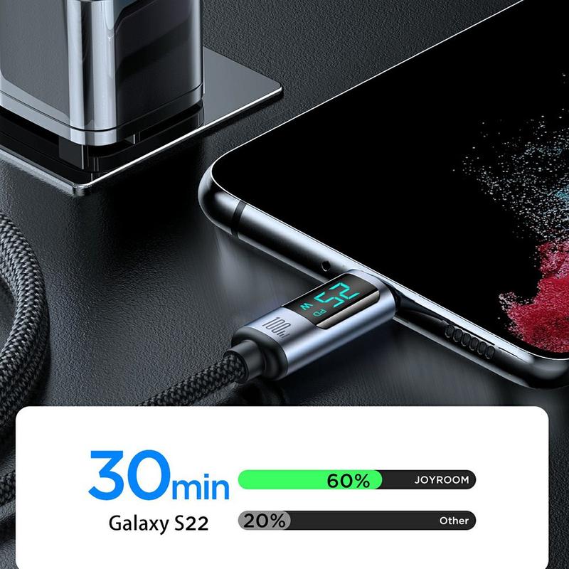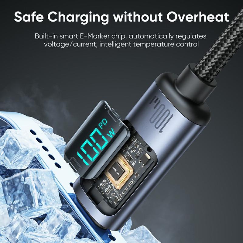 Joyroom S-CC100A16 Prisme Digital Display Hurtig opladning og data USB-C/USB-C-kabel - 100W