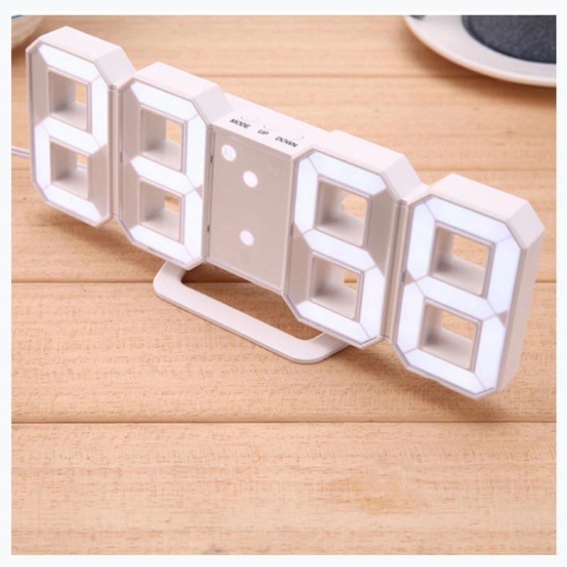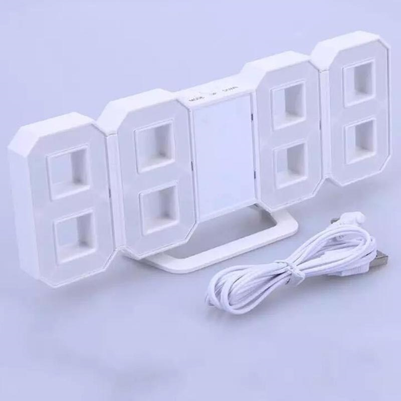 Smukt dekorativt digitalt 3D LED elektrisk ur til dit hjem, kontor, væg, bord. Et ekstremt stille ur vil være en god partner ved siden af dig, uanset om du arbejder, eller når du sover. Uret viser tiden i en hvid nuance med hvide rammer, der helt sikkert vil glæde dine øjne, både dag og nat.