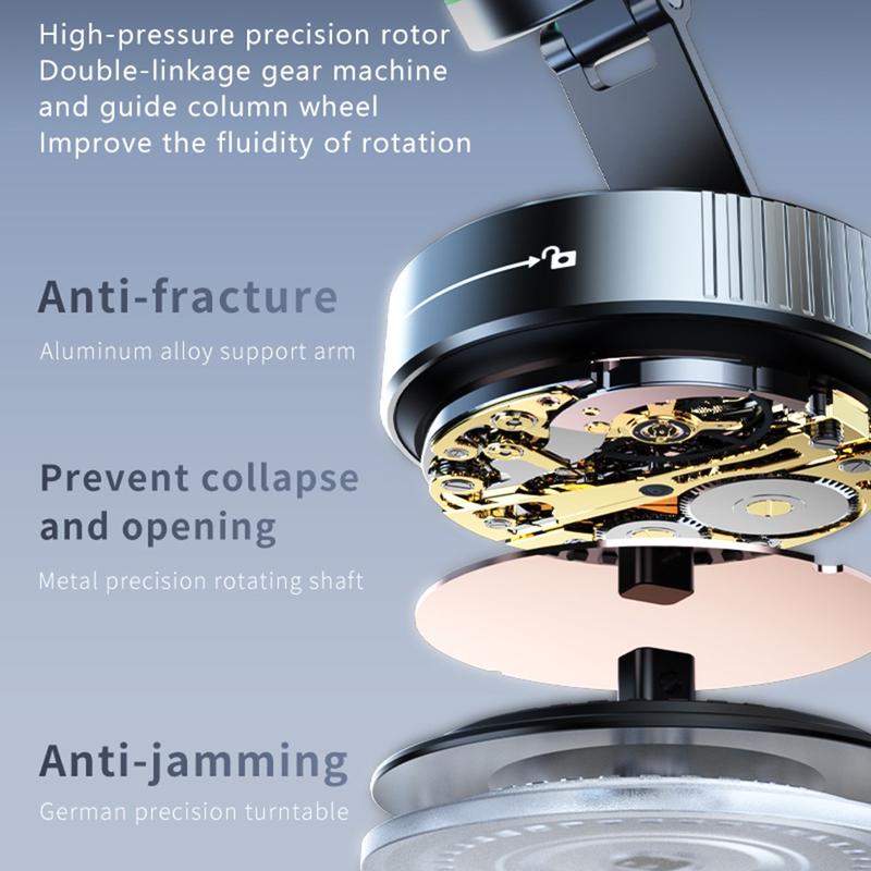 Opgrader din køre- og arbejdsoplevelse med K3 Rotating Magnetic Car Phone Holder - en kraftfuld N52-magnetholder med 15W trådløs opladning, farverig LED-belysning og en vakuumsuger til både bil- og skrivebordsbrug. Med sikker fastgørelse, 360° visning og intelligente sikkerhedsfunktioner er det den perfekte blanding af stil, bekvemmelighed og ydeevne.