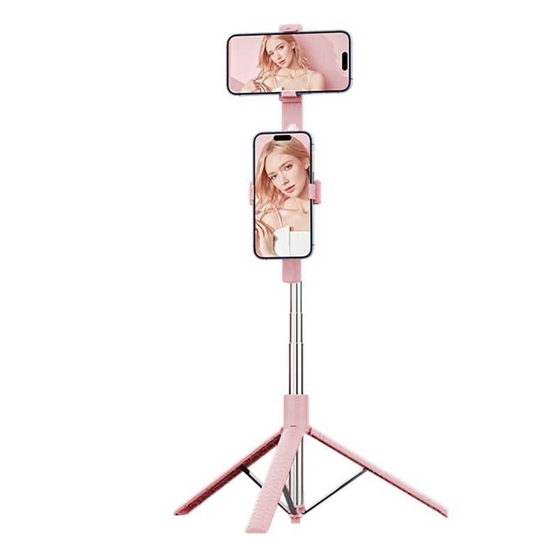 Tag din indholdsskabelse til det næste niveau med K50 dual phone clip Bluetooth selfie stick tripod, der er designet til vloggere, livestreamere og rejsende. Med en maksimal højde på 1,9 meter og en kompakt sammenfoldet størrelse på kun 34 cm giver dette stativ uovertruffen fleksibilitet og bærbarhed. Dets dobbelte telefonklemme gør det muligt at optage eller streame fra to smartphones samtidig - perfekt til at håndtere flere platforme eller kameravinkler på én gang. Med trådløs Bluetooth 5.0-forbindelse giver det en stabil fjernbetjeningsoplevelse med lang rækkevidde. Det 360° drejelige beslag sikrer kreativ frihed til vandret eller lodret optagelse, mens pop-up-mekanismen med et enkelt klik gør opsætningen hurtig, robust og ubesværet. K50 er fremstillet af slidstærkt ABS-plast og rustfrit stål og er bygget til at fungere i alle miljøer.