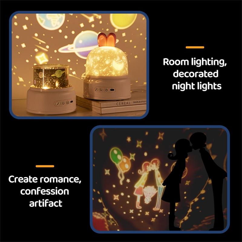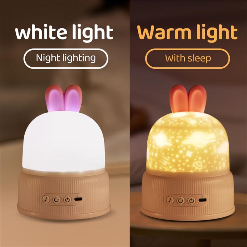 Fjernbetjent kanin projektor lampe med musik - USB-drevet natlys - 3W, USB-C