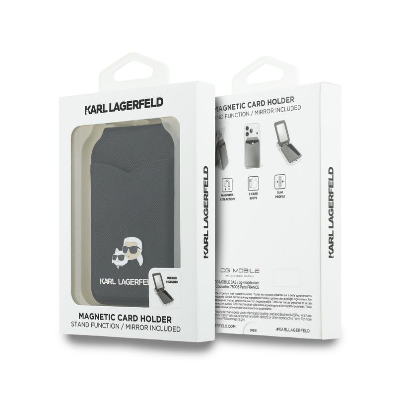 Karl Lagerfeld Karl & Choupette magnetisk kortholder med stativ og spejl - MagSafe-tegnebog med indbygget spejl, kortholder og stativ