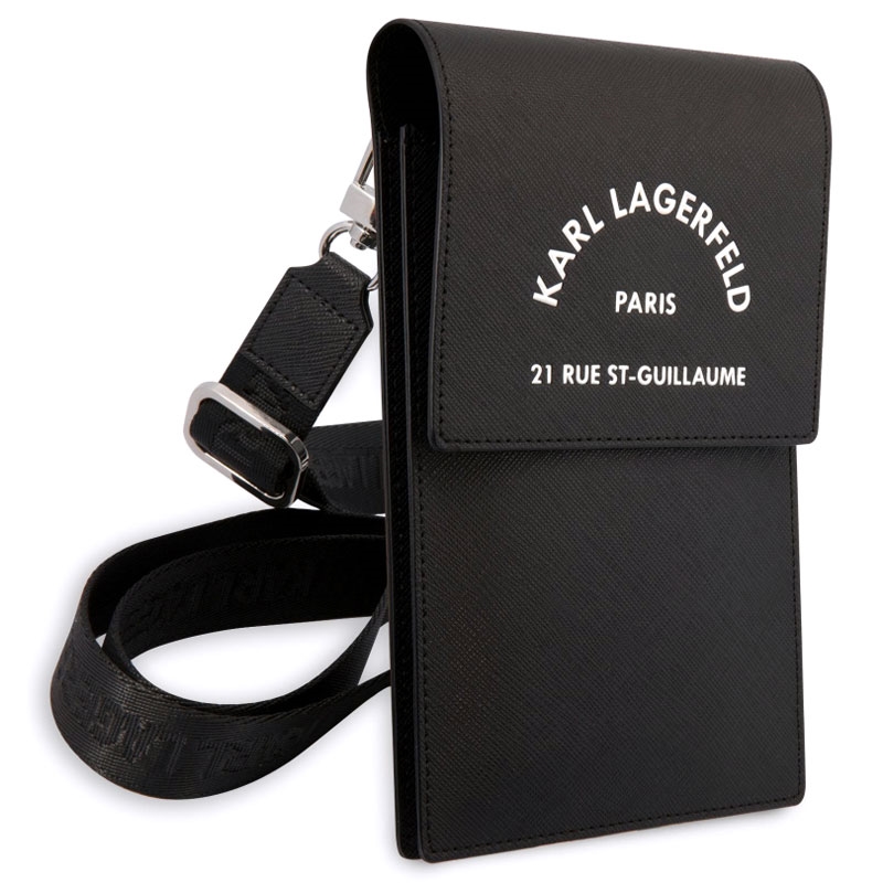 Karl Lagerfeld Smartphone Skuldertaske - Paris 21 Rue St-Guillaume - Sort er den perfekte kombination af stil og funktionalitet. Denne elegante skuldertaske er designet til at beskytte og bære din smartphone med lethed, samtidig med at den tilføjer et strejf af luksus til din daglige garderobe. Med sin sofistikerede sorte farve og ikoniske Karl Lagerfeld branding er denne taske et must-have for enhver modebevidst person.