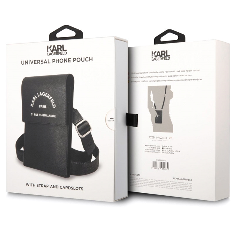 Med Karl Lagerfeld Smartphone Skuldertaske - Paris 21 Rue St-Guillaume - Sort får du en taske, der ikke kun beskytter din smartphone, men også tilføjer et strejf af luksus og stil til din hverdag. Dette er en investering i både mode og funktionalitet, som du vil nyde i mange år fremover.