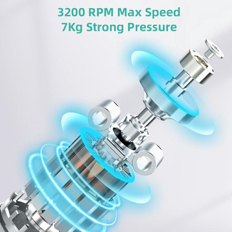 - Justerbar intensitet med trinløs hastighedskontrol: Udstyret med en børsteløs motor har den et hastighedsområde på 1000-3200 o/min (±10%), så du kan tilpasse massageintensiteten til dit komfortniveau.