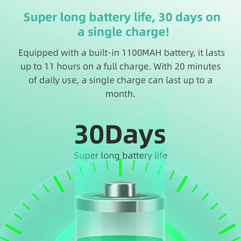 - Langvarig batterilevetid: Enheden drives af et 1100 mAh-batteri og giver op til 11 timers drift på en enkelt 1,5-timers opladning, hvilket sikrer uafbrudte muskelafslapningssessioner.