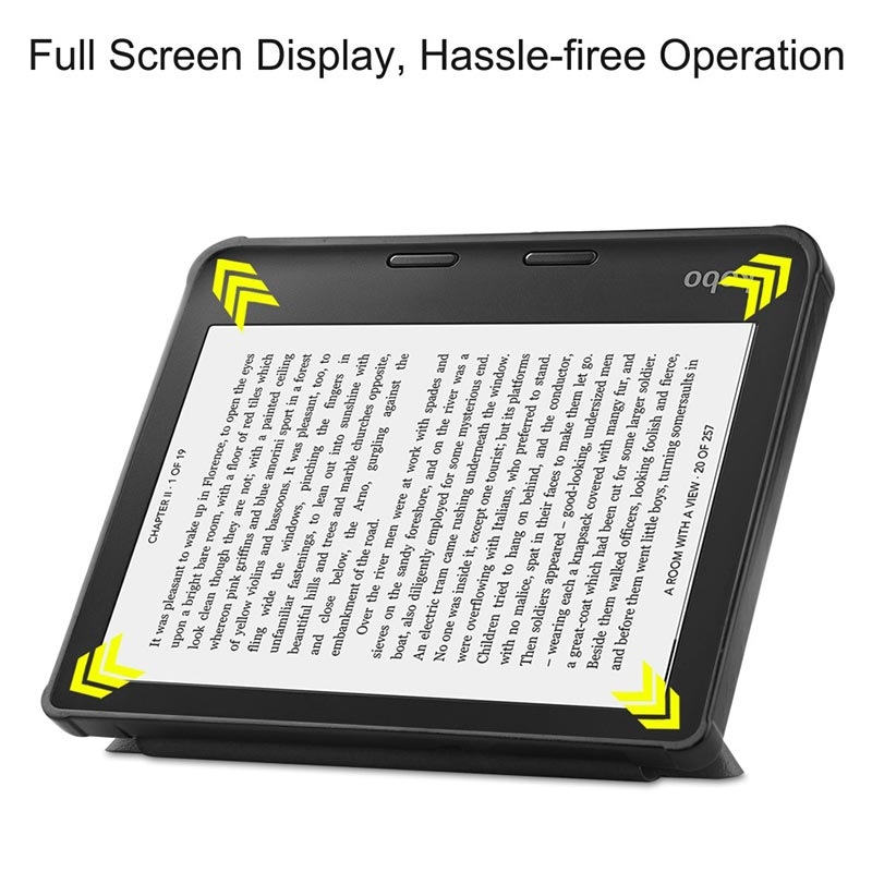 Dette cover er lavet af højkvalitets polyurethan og TPU-materialer, som giver en simpel og stilfuld fremtræden. Det er lavet til at beskytte din Kobo Libra 2 og har et origami stativ, som giver dig flere visningsvinkler. Takket være den intelligente wake-up/sleep-funktion, tænder og slukker dette foliocover automatisk skærmen, når du åbner og lukker coveret.