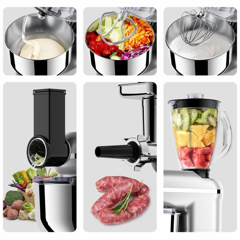 Gør din køkkenrutine enklere med den multifunktionelle køkkenmaskine på 5.5L, et alt-i-et-apparat, der er designet til at klare alle madlavnings- og bageopgaver med lethed. Den kombinerer kraften fra en dejælter, røremaskine, blender, kødhakker og saftpresser og leverer professionelle resultater og dagligdags bekvemmelighed i én kompakt enhed.