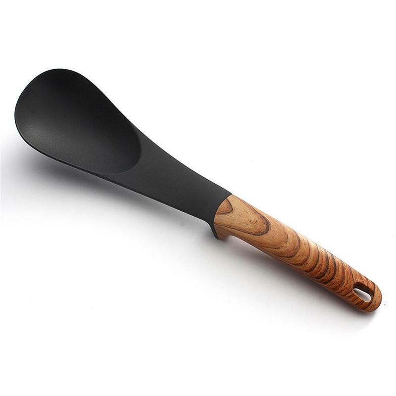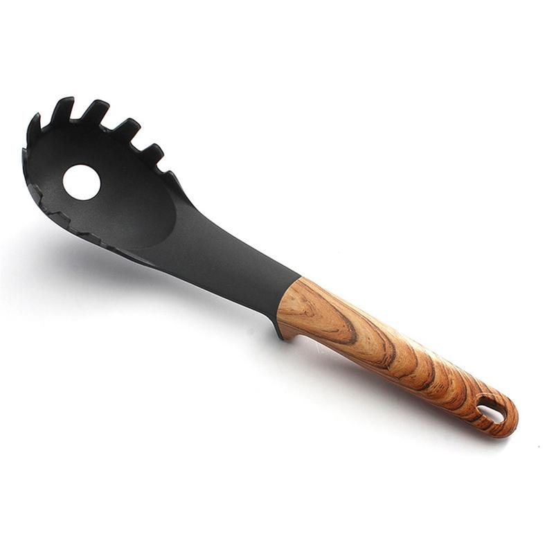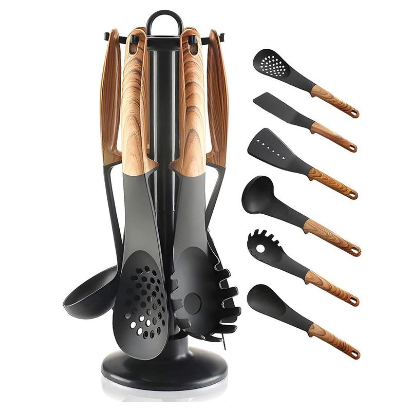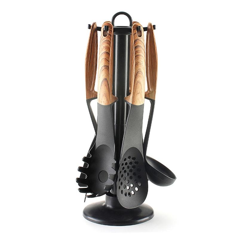 - Komplet madlavningskollektion i 7 dele - Indeholder alt det nødvendige til køkkenet: suppeske, hulske, fast ske, hulspatel, fast spatel, pastaspade og et matchende opbevaringsstativ.