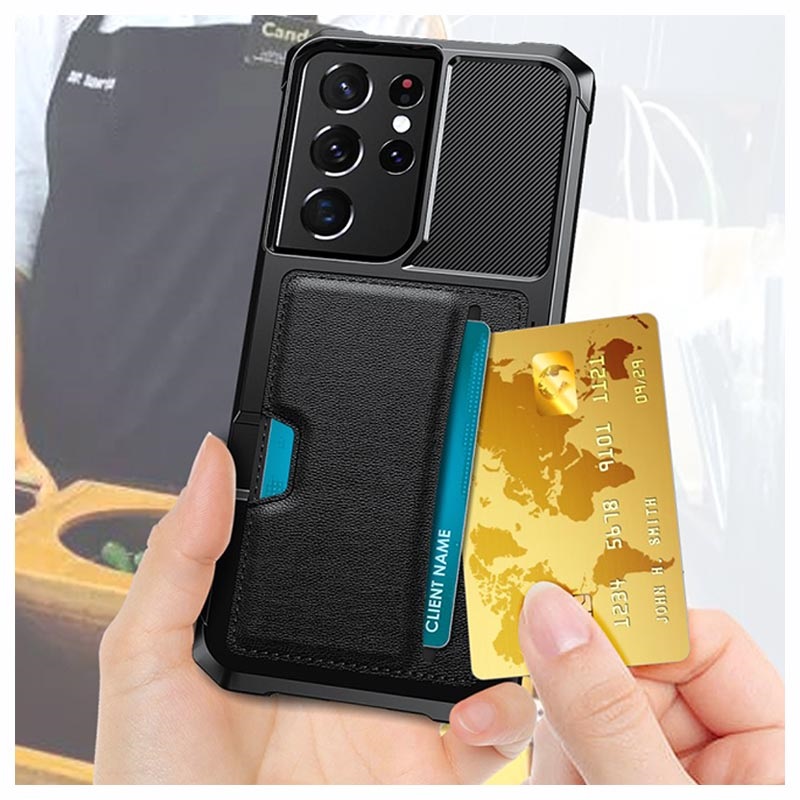 Kortholder Samsung Galaxy S21 Ultra 5G Hybrid Cover - Sort