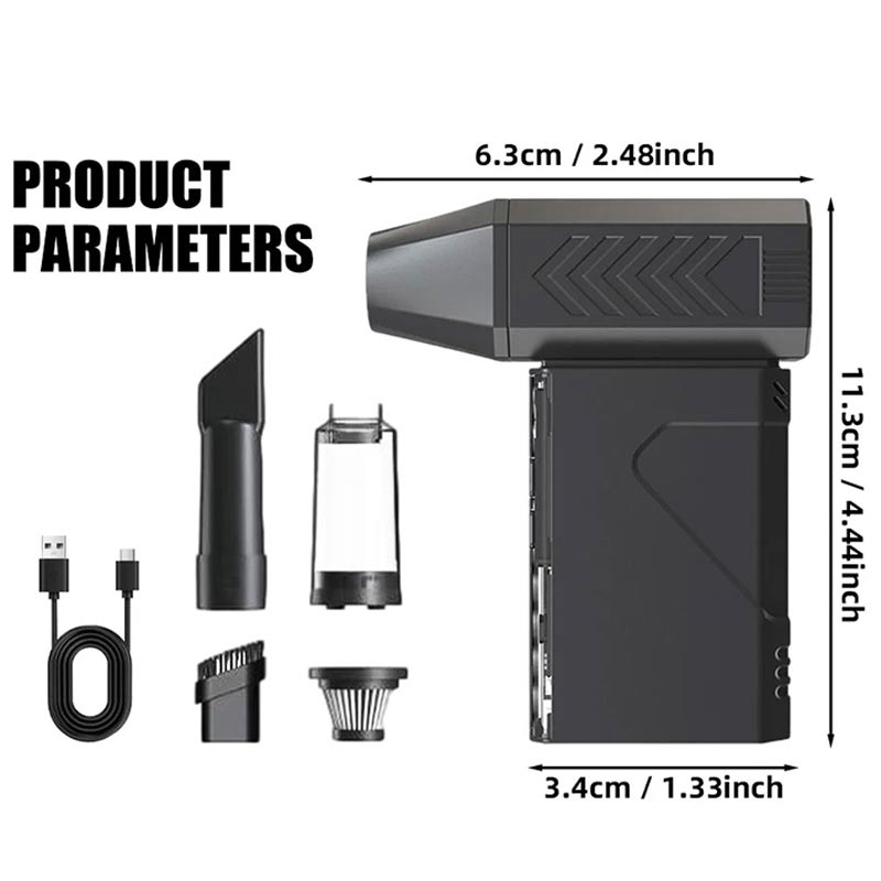 Hvis du vil have et værktøj, der både kan blæse støv ud af svært tilgængelige områder og støvsuge små snavs, er denne 2-i-1-enhed en praktisk opgradering. Motoren med højt omdrejningstal leverer stærk ydeevne, mens de 100 hastighedsniveauer giver dig mulighed for at kontrollere effekten til delikat udstyr eller tungere snavs. Batteriet på 8000 mAh gør det særligt praktisk til længere rengøringssessioner.