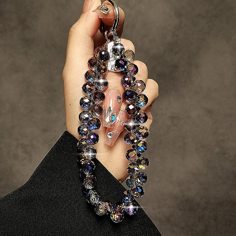 14cm kæde til mobiltelefon med krystalperler - håndledsrem og nøglering med gennemsigtig fastgørelsesflig