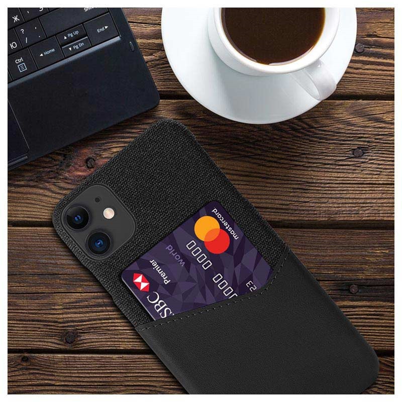 Takket være det hårde polykarbonatlag giver dette utroligt tynde cover din iPhone 11 ekstra fasthed samtidig med at enheden stadig kan ligge i din lomme. Derudover gør det delikate lag stof og den integrerede kortlomme tilbehøret både moderigtigt og praktisk.