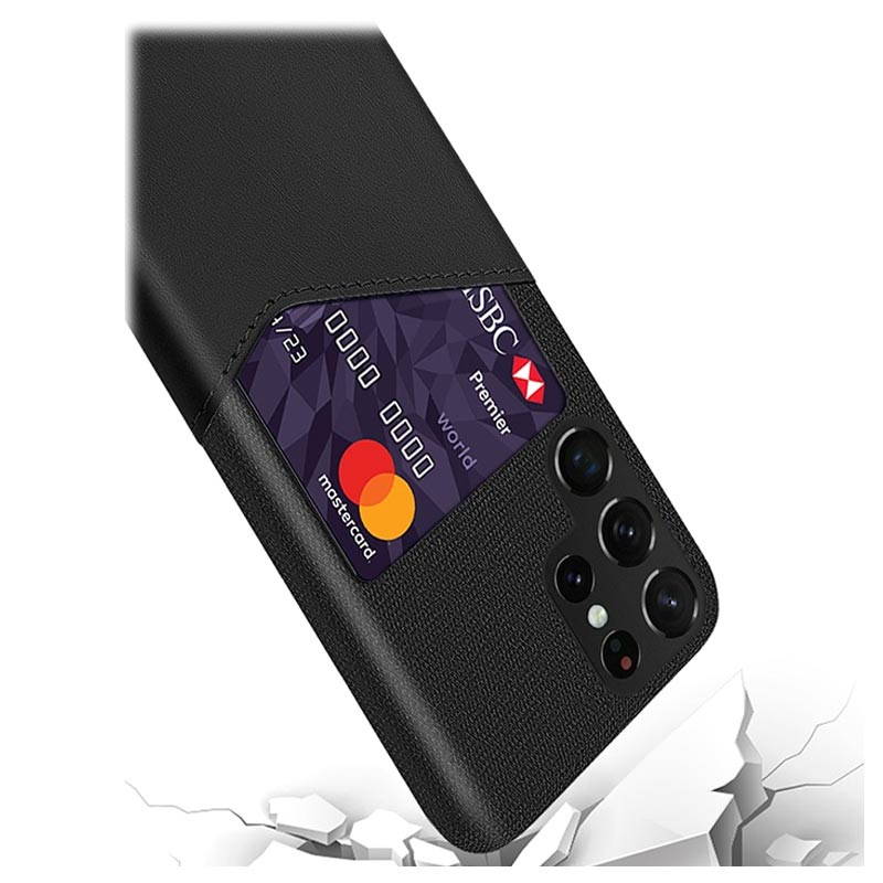 KSQ Samsung Galaxy S22 Ultra 5G Cover med Kort Lomme - Sort