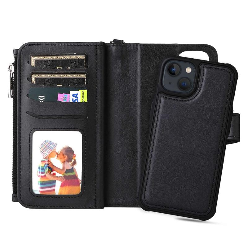 KT Multi-funktionel Series-4 lynlås Telefon lommeetui til iPhone 14, aftageligt 2-i-1 PU læder pung cover