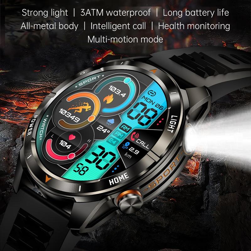 KT80 Sports Smart Watch - 3ATM vandtæt, Bluetooth-opkald, 1.46" HD-berøringsskærm, integreret lommelygte
