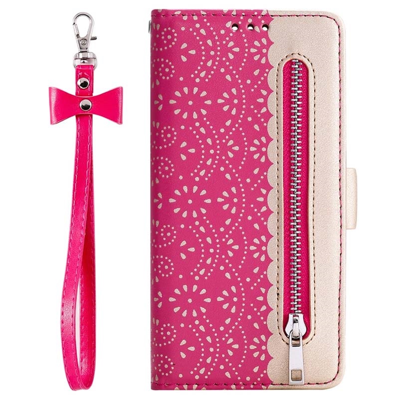 Lace Pattern Huawei P40 Lite Etui med Pung - Hot Pink