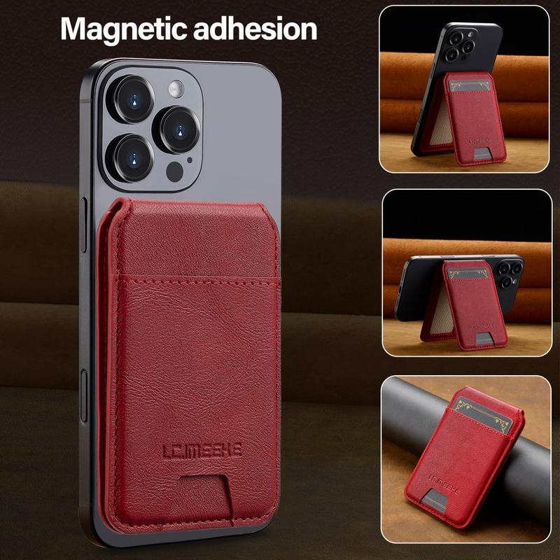 LC.IMEEKE RFID-blokerende magnetisk kortholder med kickstand - rød