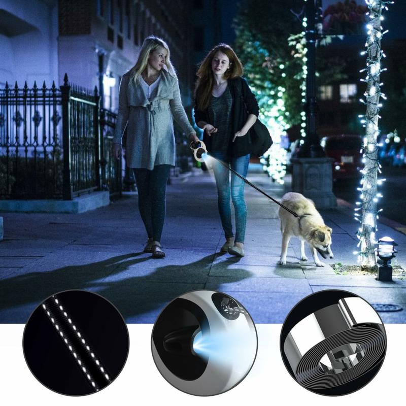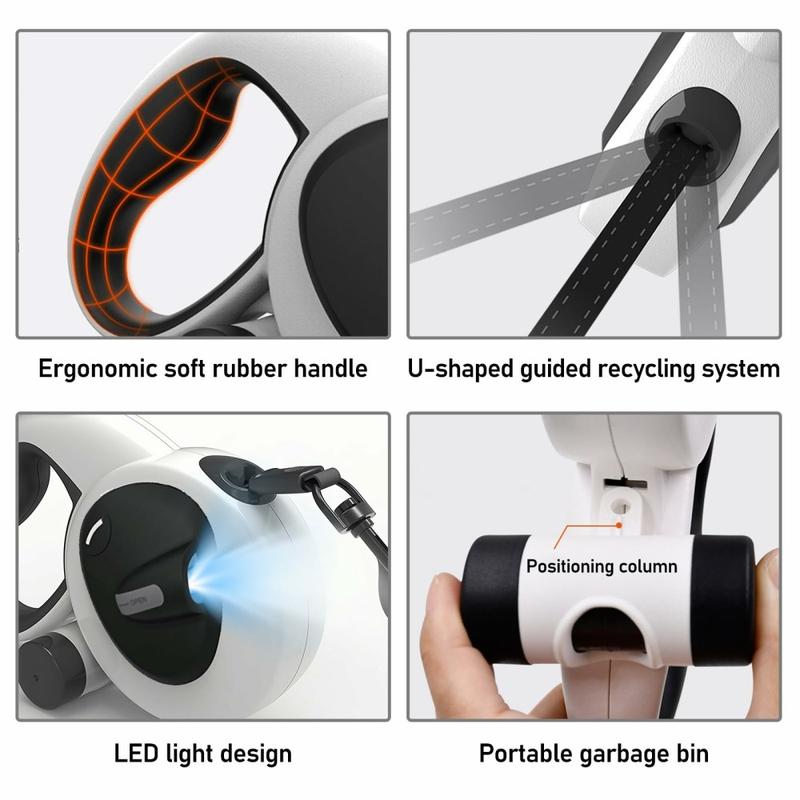 Du får bekvemmeligheden ved en optrækkelig snor, sikkerheden ved en indbygget lommelygte og refleksbånd og det praktiske ved en affaldsposeholder - alt sammen i én robust og stilfuld enhed. Mindre tilbehør at jonglere med betyder roligere og sjovere gåture for både dig og din hund.