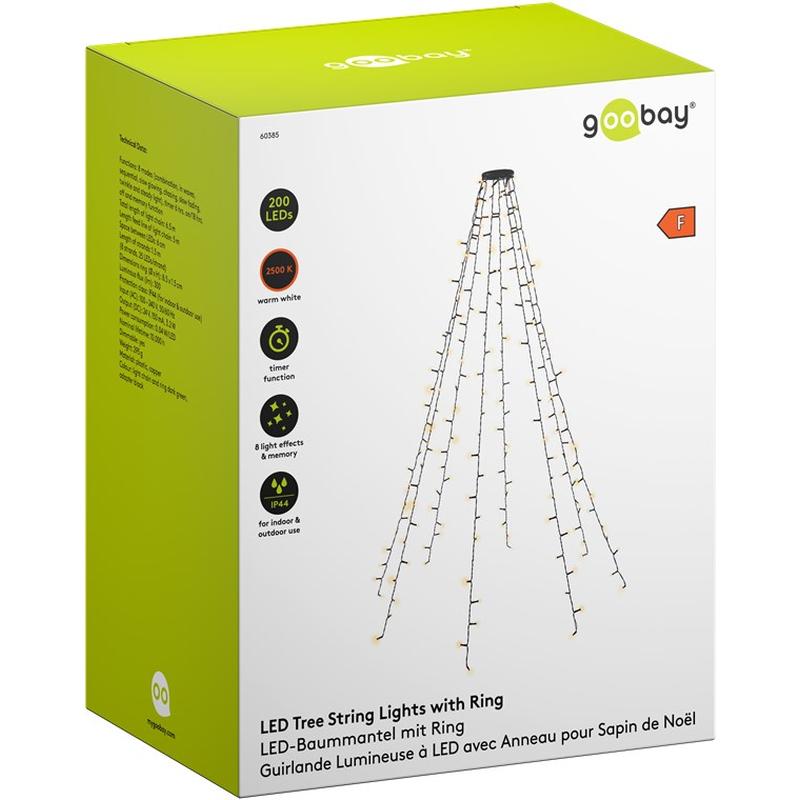 Oplys ubesværet din julefest med 200 LED Tree Cover with Ring - 8 x 1,5 m. Dette specialiserede cover er designet til at passe til juletræer fra 1,40 til 1,80 m og strømliner din dekorationsrutine, hvilket gør opsætningen hurtigere og nemmere end traditionelle lyskæder. IP44-klassificeringen sikrer varig ydeevne både indendørs og udendørs, mens det mørkegrønne kabel passer perfekt ind i naturligt løv.