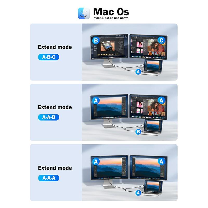 Denne adapter har to HDMI-udgange, der understøtter udvidede og spejlede skærmtilstande. Den ene port understøtter 4K-opløsning ved 30 Hz (via TUTULINK-driveren), mens den anden leverer 1080P Full HD, hvilket giver mulighed for fleksible skærmkombinationer til arbejde, præsentationer eller underholdning.