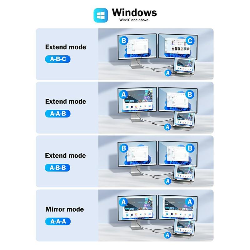 Lemorele HD10 USB/USB-C til dobbelt HDMI-adapter er designet til at udvide eller spejle din bærbare eller stationære skærm på tværs af to eksterne skærme. Ved at muliggøre opsætninger med to skærme forbedrer den produktiviteten, multitasking og workflow-effektiviteten betydeligt til professionel og daglig brug.