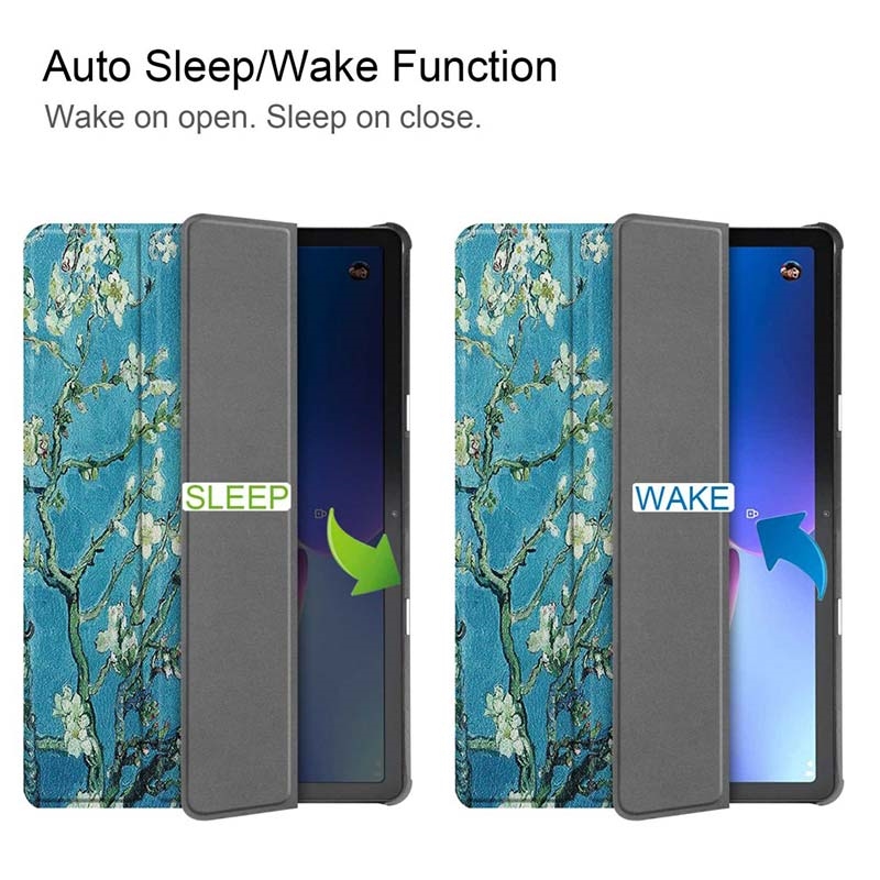 Uanset om du ser en video eller tegner med din stylus på din Lenovo Tab M10 Gen 3, holder folio coveret den i din ideelle vinkel, og giver en mere komfortabel og produktiv oplevelse. Den smarte dvale/vågn-op funktion tænder og slukker automatisk for skærmen, når du åbner og lukker klappen.
