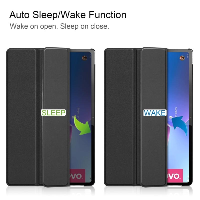 Uanset om du ser en video eller tegner med din stylus på din Lenovo Tab P12 Pro, holder folio coveret den i din ideelle vinkel, og giver en mere komfortabel og produktiv oplevelse. Den smarte dvale/vågn-op funktion tænder og slukker automatisk for skærmen, når du åbner og lukker klappen.