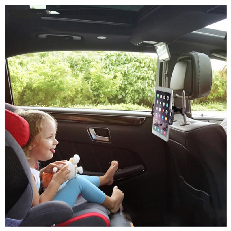 Lange ture bliver aldrig kedelige nu med denne universelle nakkestøtte-bilholder til smartphones og tablets. Dine bagsædepassagerer vil blive underholdt ganske godt takket være et justerbart og 360 grader drejeligt beslag, som kan sættes op i den ønskede vinkel for komfortabel filmvisning, læsning af e-bøger, spil osv. Denne praktiske bilholder er lavet af slidstærkt og langtidsholdbar aluminiumslegering med silikonepuder, der vil beskytte din enhed mod ridser og vibrationer under turene. Det justerbare beslag passer til smartphones og tablets, der er mellem 4" og 11"
