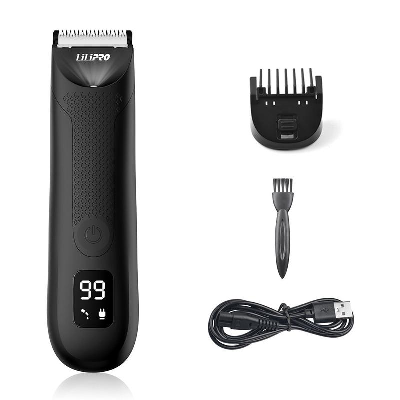 Lilipro elektrisk kropshårtrimmer med LED-display - vandtæt plejesæt med opladningsstation
