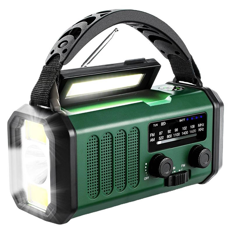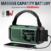 Lippa FM-nødradio med håndsving, solpanel, kompas og 10000mAh powerbank - grøn