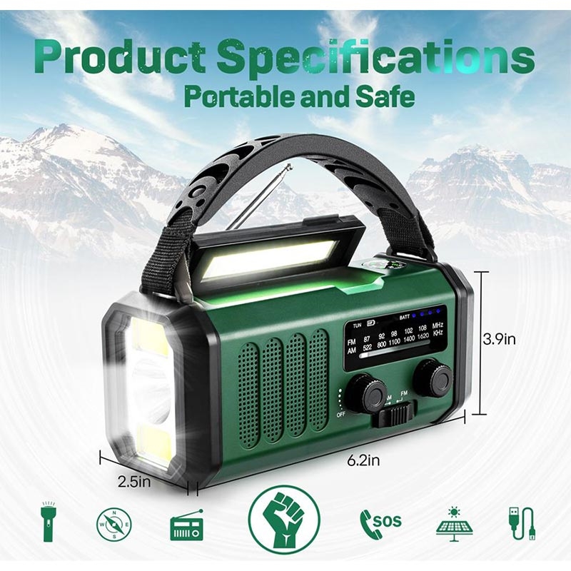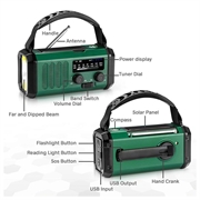 - Multifunktionel nødradio: Dækker AM- (520-1710 kHz), FM- (87-108 MHz) og NOAA- (162,400-162,550 MHz) frekvenser, hvilket sikrer adgang til vigtige opdateringer og oplysninger.