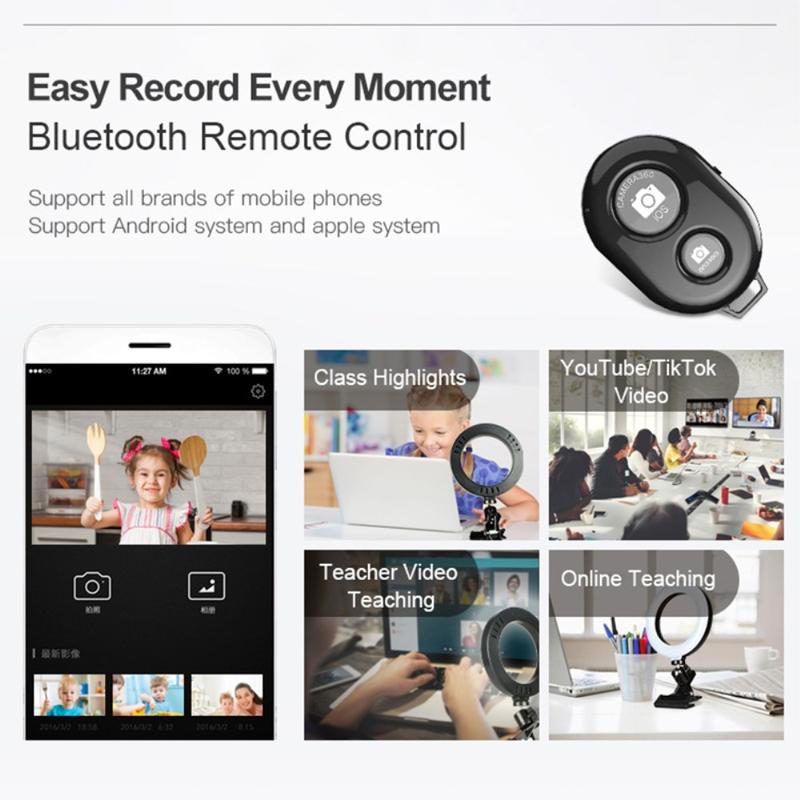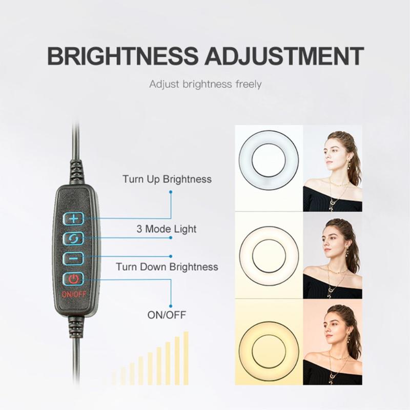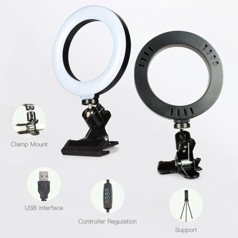 Live Broadcast Video Shooting 6" LED Selfie Ring Light med 3 farvetilstande + klemmemontering