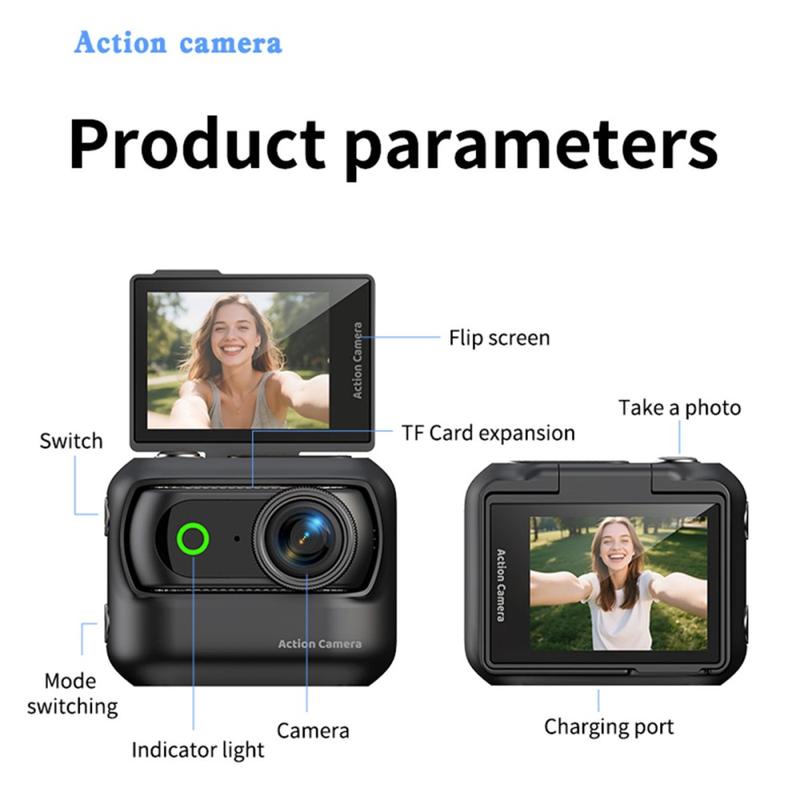 Dette mini-sportskamera er bygget med fleksibilitet for øje og understøtter flere optagelsestilstande, herunder video, foto, slow motion, time-lapse og ND-spejleffekter, hvilket gør det velegnet til både afslappet optagelse og mere kreativt indhold. Det bærbare design giver dig mulighed for at montere det på en halsrem, hat, hjelm, cykelstyr eller andre kompatible overflader, mens den udvidede batteristøtte hjælper dig med at filme længere, når du er på farten.