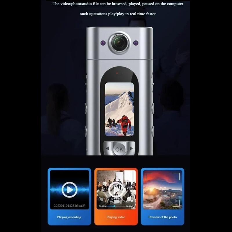 - Gør-det-hele-design: Kombinerer action-kameraets robusthed, body-kameraets anvendelighed og vloggerens bekvemmelighed i én lommevenlig enhed.