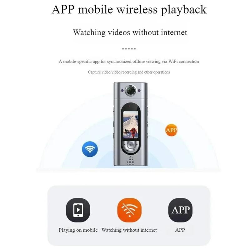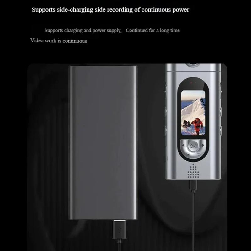 - Bærbar hele dagen - 600 mAh Li-ion-batteri oplades via Type-C; nok til ca. 90 minutters kontinuerlig 4K-optagelse (\-varierer efter temperatur og WiFi-brug).