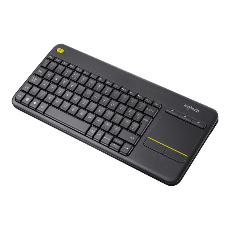 Wireless Touch Keyboard K400 Plus er et tastaturlayout i fuld størrelse og touchpad i en kompakt størrelse. Incurve-taster er ideelle til maskinskrivere, og det bløde tastetryk gør dette til et stille tastatur. Touchpad'en i fuld størrelse giver dig de velkendte rulle- og navigationsbevægelser. Med venstre- og højreklik-knapperne under touchpad'en og lydstyrkekontrolknapperne ovenfor er kontrollen lige ved hånden. For tohåndskontrol, der typisk bruges af dem, der kan lide at bruge tommelfingrene til at navigere, er en venstre museklik-knap placeret øverst til venstre på tastaturet - naviger med din højre hånd, vælg med venstre.