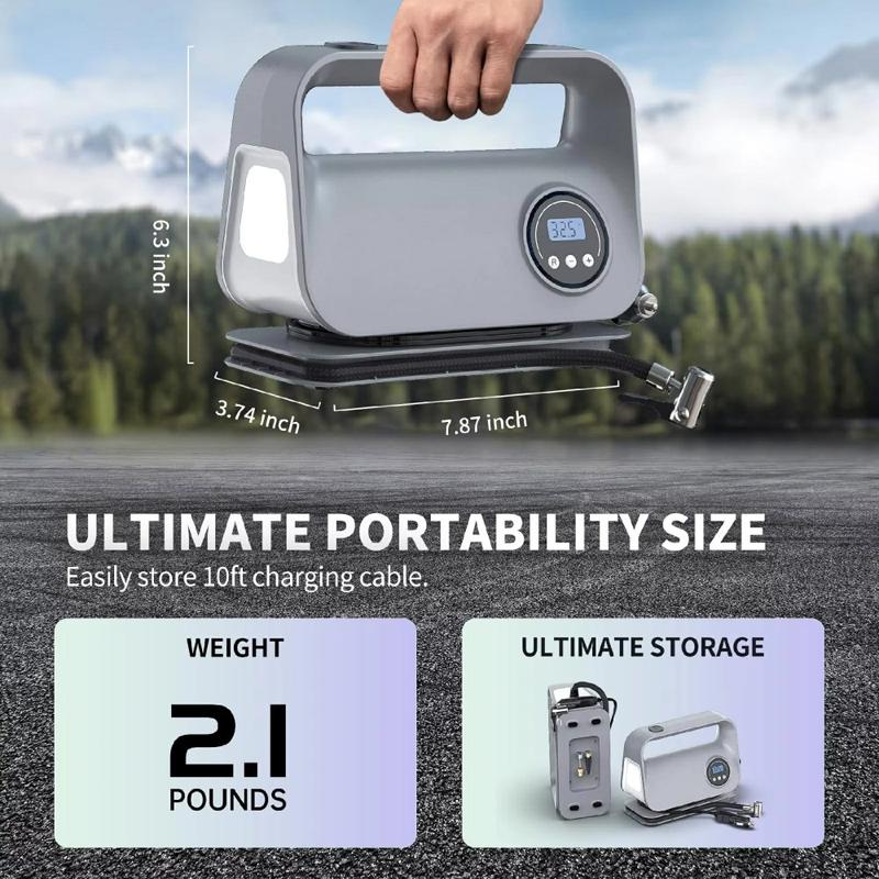 - Bærbar og let - kompakt nok til at opbevare i handskerummet eller bagagerummet, men kraftig nok til at håndtere flere oppumpningsopgaver.